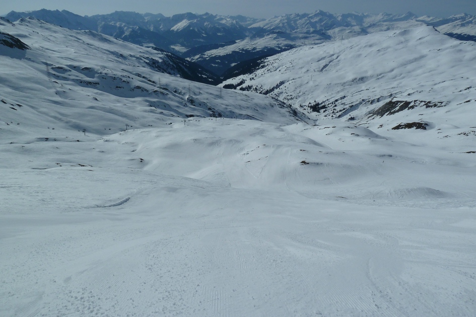 Blick von der Abfahrt 44 zur Sesselbahn Lavadinas und der schwarzen Abfahrt 35.