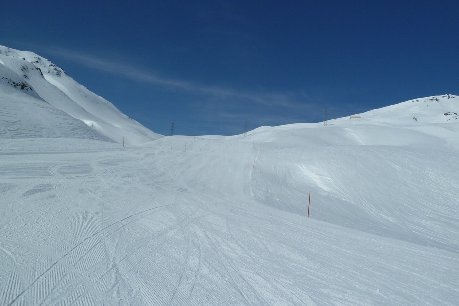 Blick zum Abschnitt der blauen Abfahrt 38 kurz vor der Kreuzung mit der blauen Abfahrt 31.
