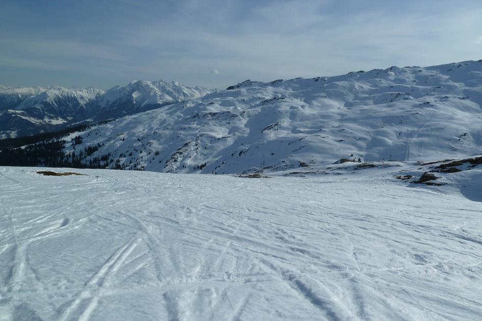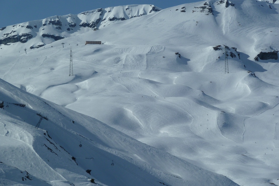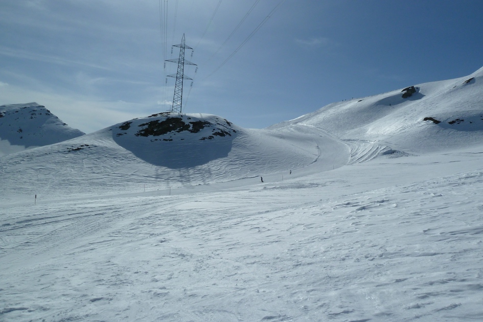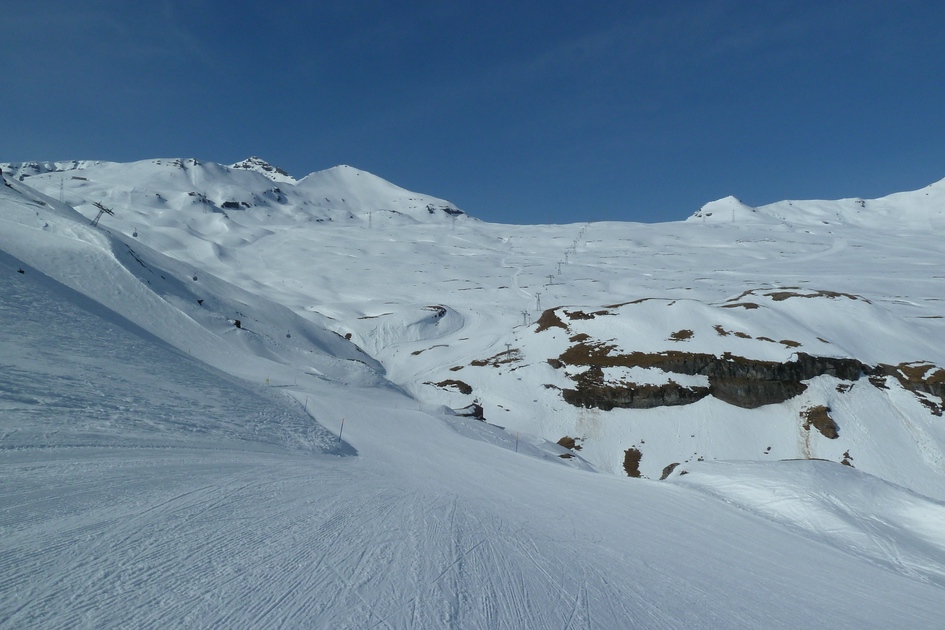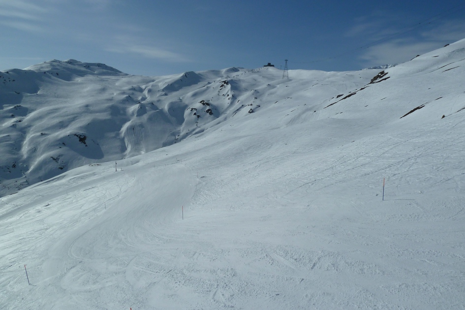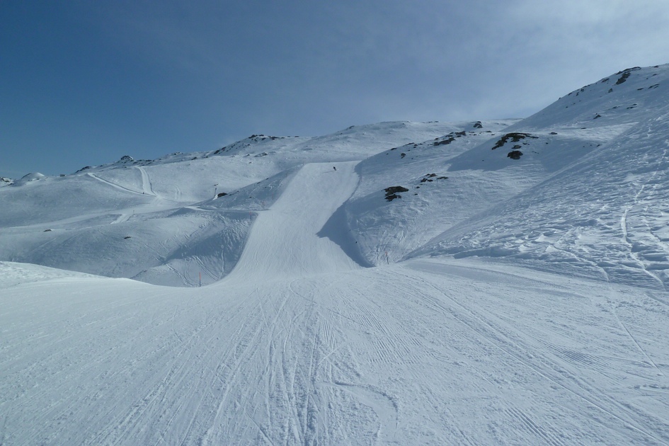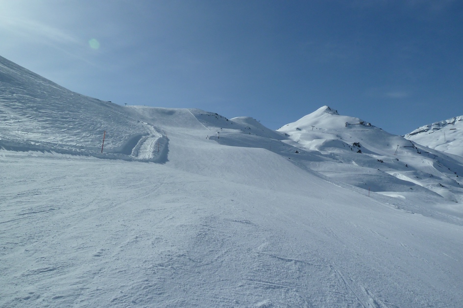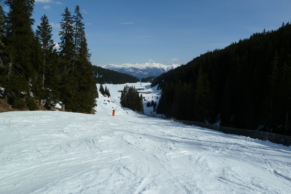Blaue Abfahrt 43 mit Blick zur Gondelbahn Vorab. Von links kommt die schwarze Abfahrt 41.