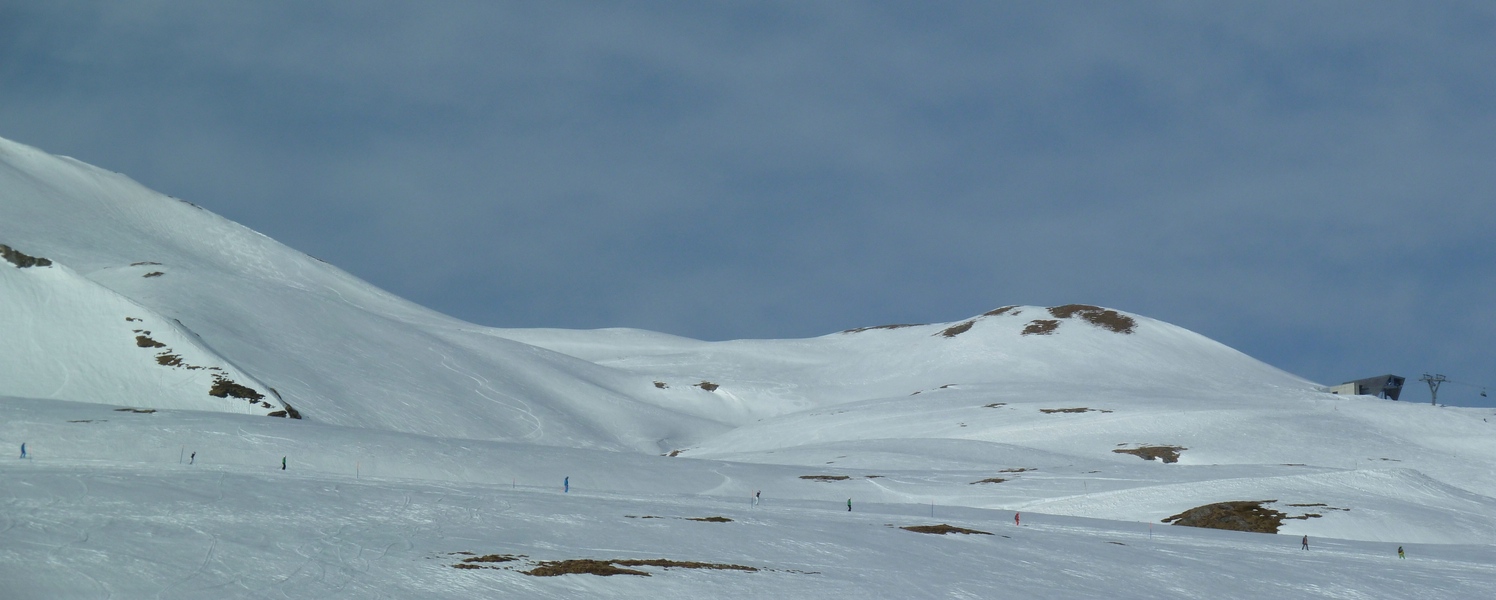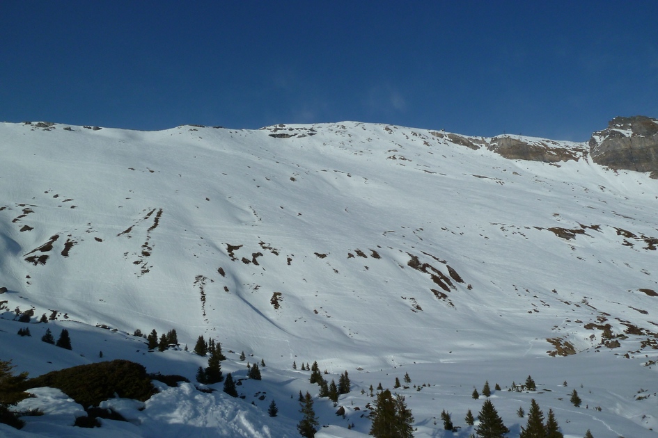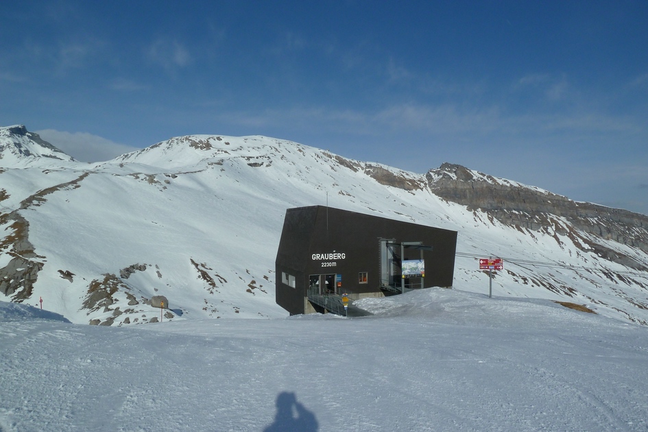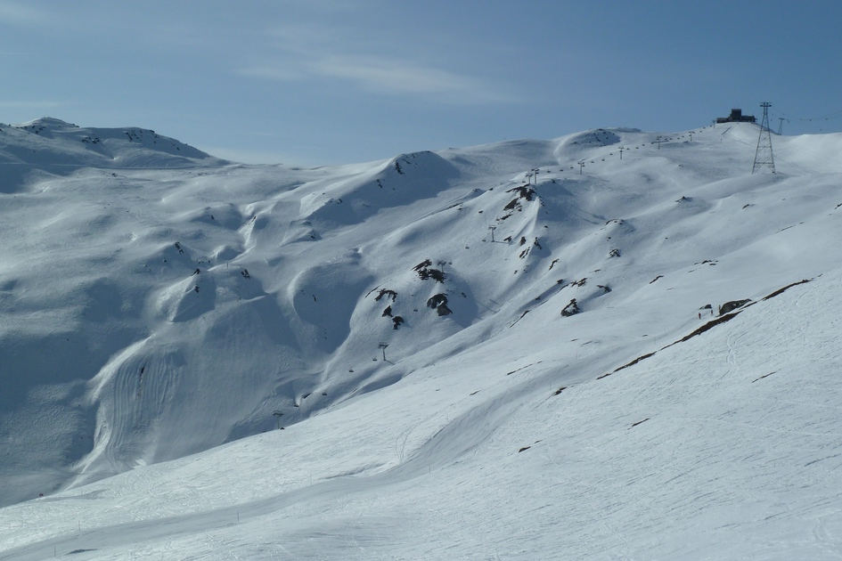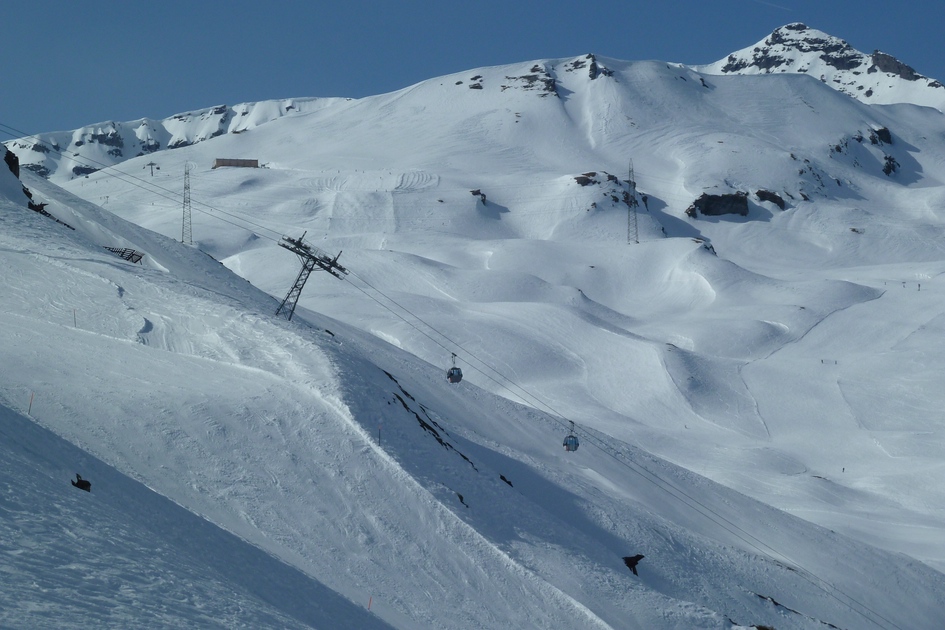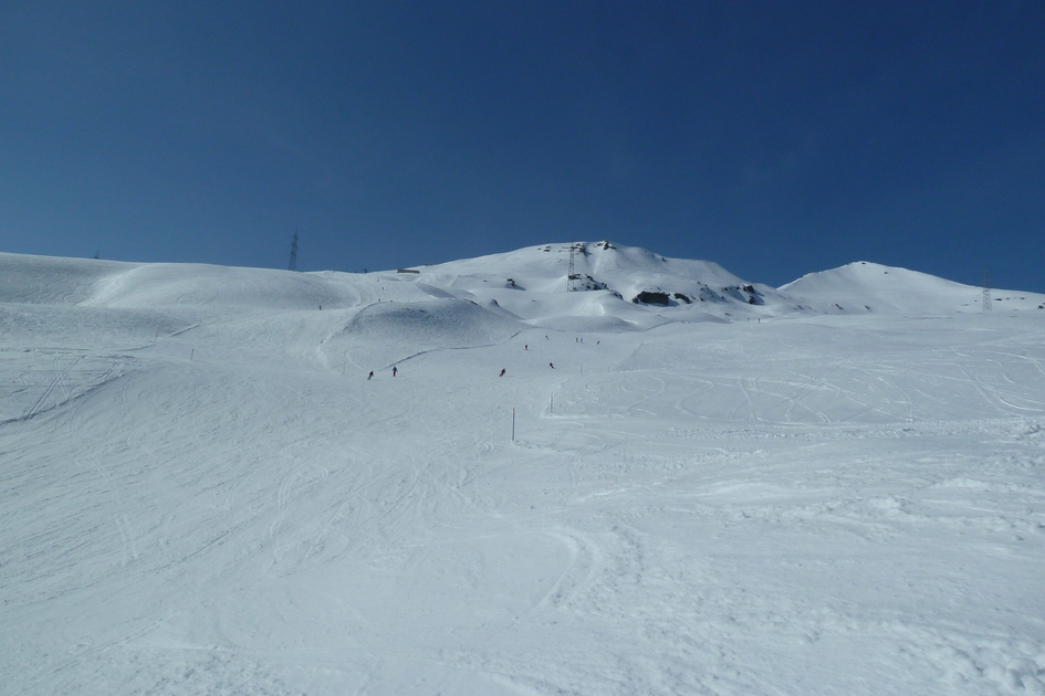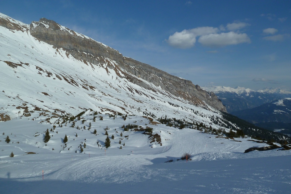 Blaue Abfahrt 43 mit Blick zur Gondelbahn Vorab. Von links kommt die schwarze Abfahrt 41.