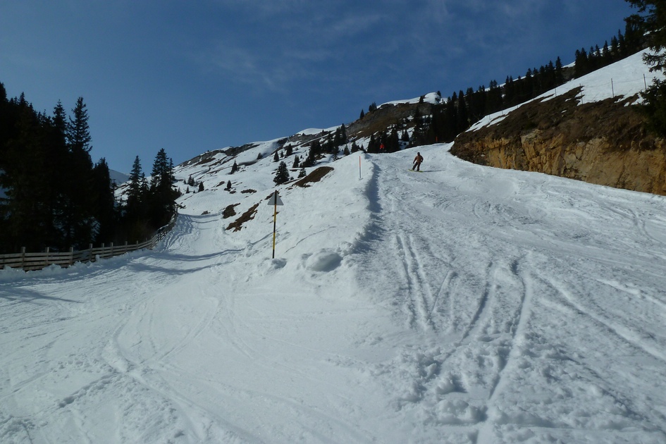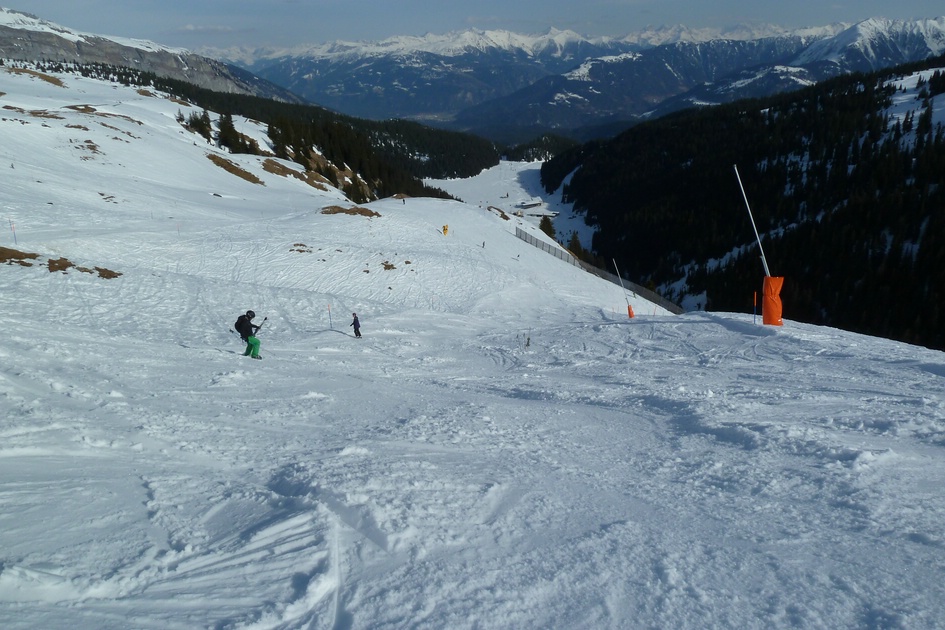 Weiterer Verlauf der blauen Abfahrt 38/40 mit Blick zur Station Plaun.