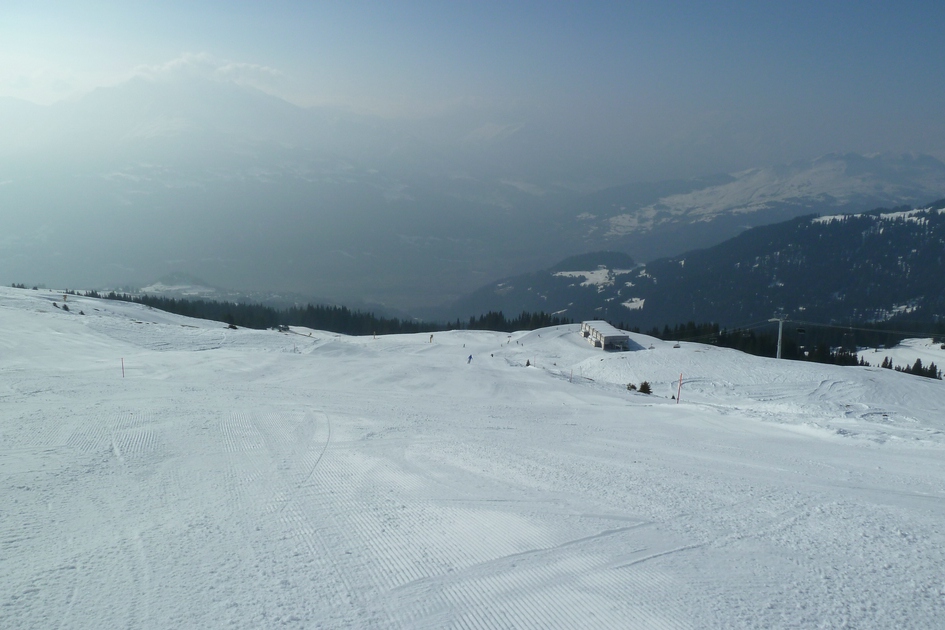 Rückblick zur Station Crest la Siala (Bergstation Sesselbahn Alp Dado) von der blauen Abfahrt 51.