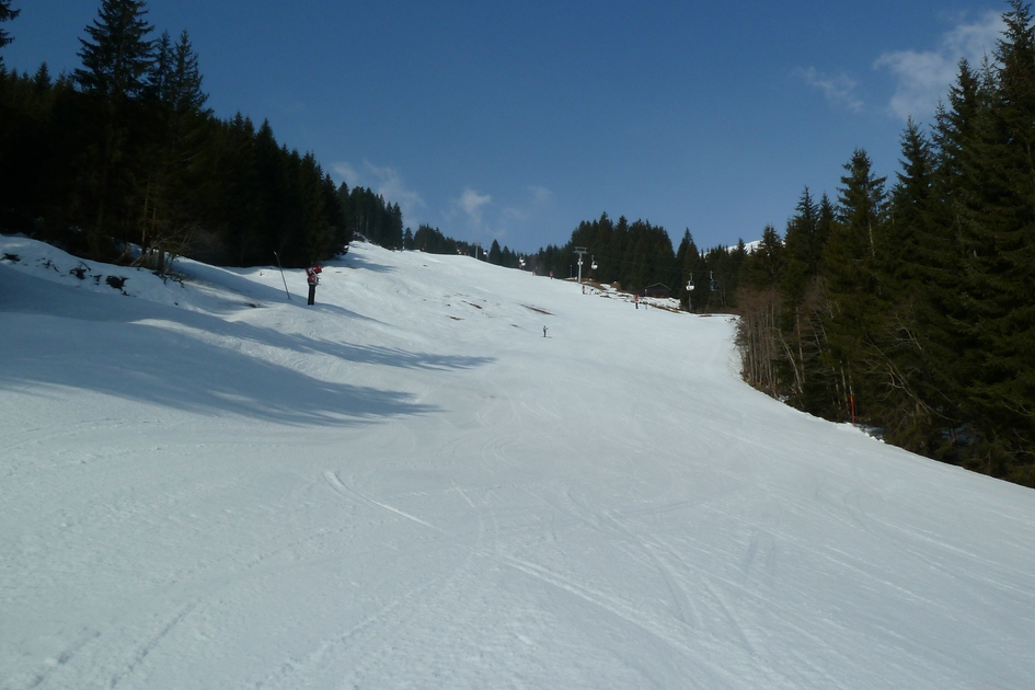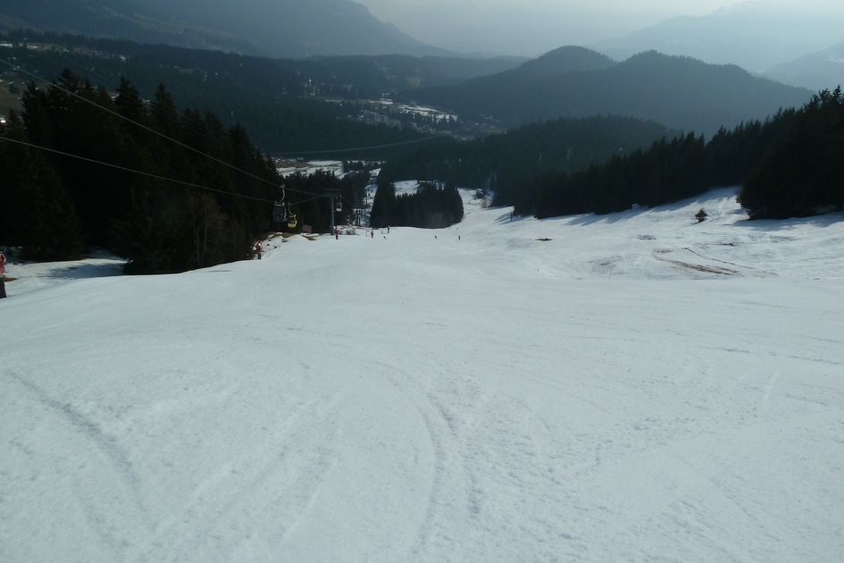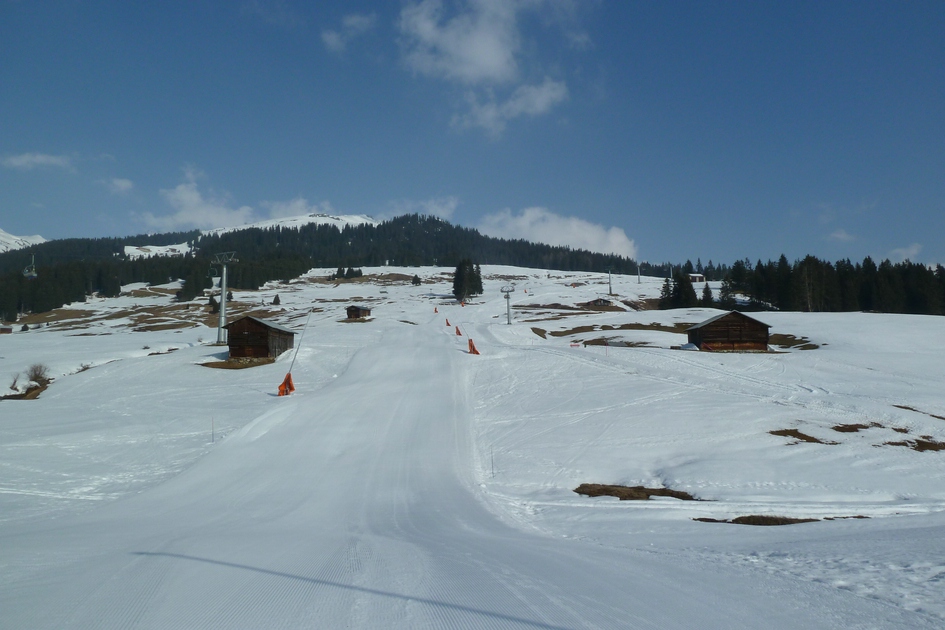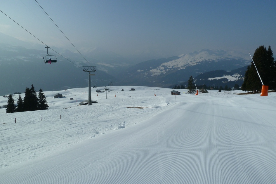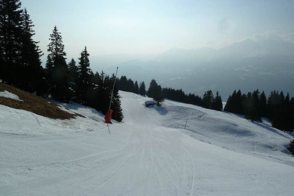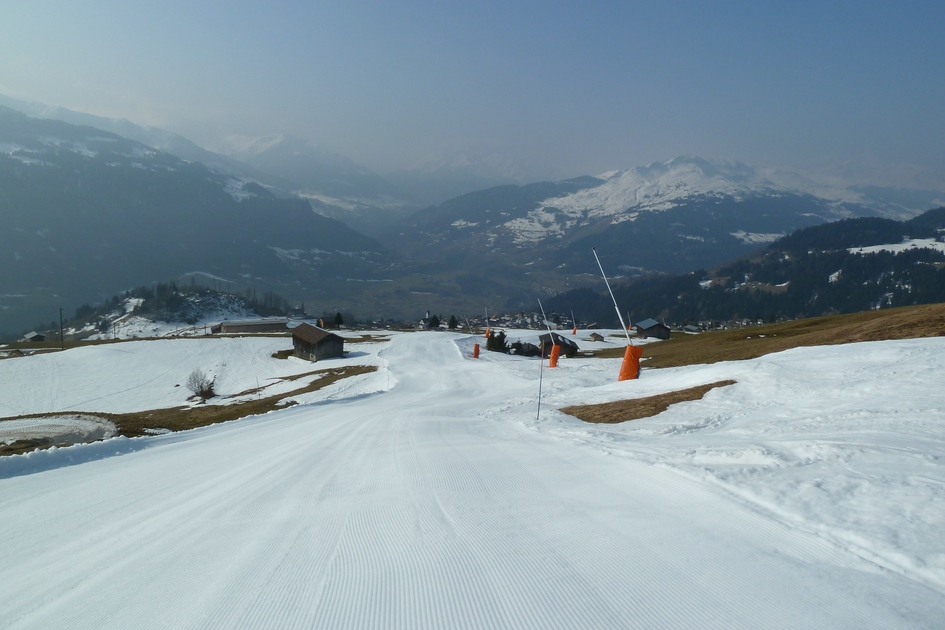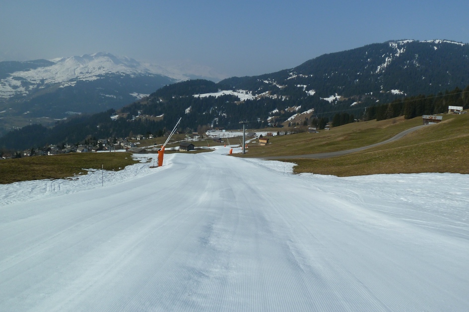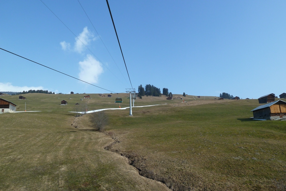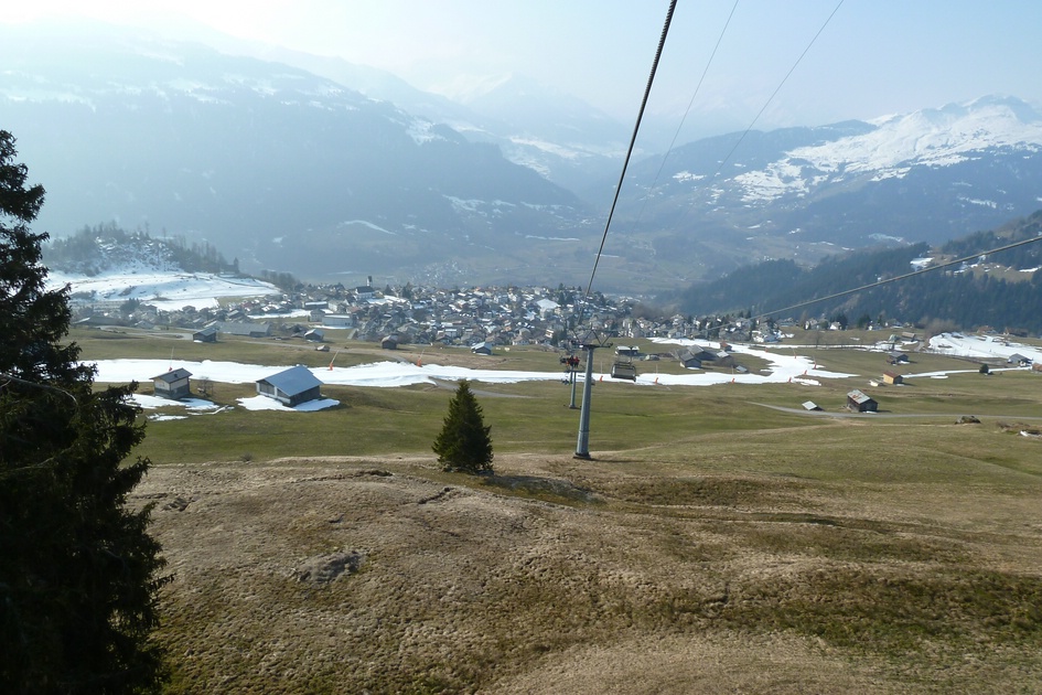Blick Richtung Skiroute 84 aus der Sesselbahn Falera. Wegen zu wenig Schnee im unteren Bereich war diese leider nicht mehr geöffnet.