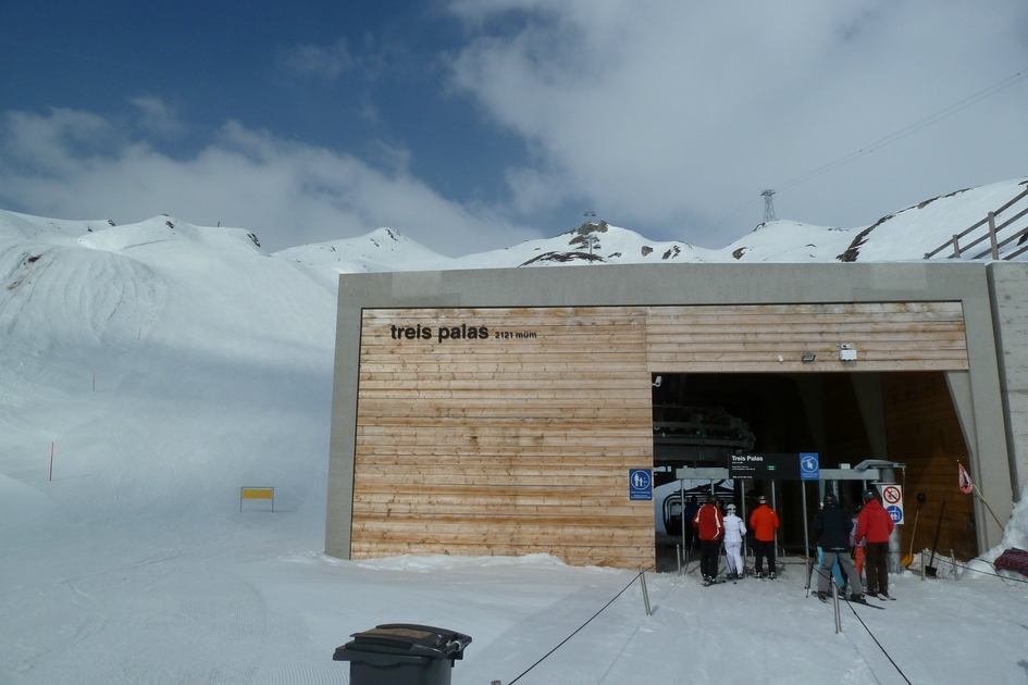 Rote Abfahrt 45/blaue Abfahrt 48 mit Sesselbahn Treis Palas und Pendelbahn Crap Masegn.