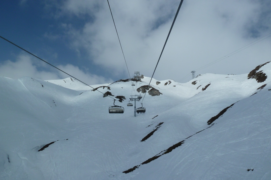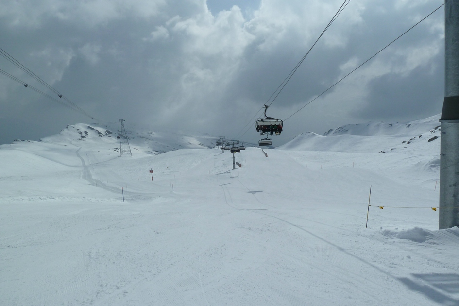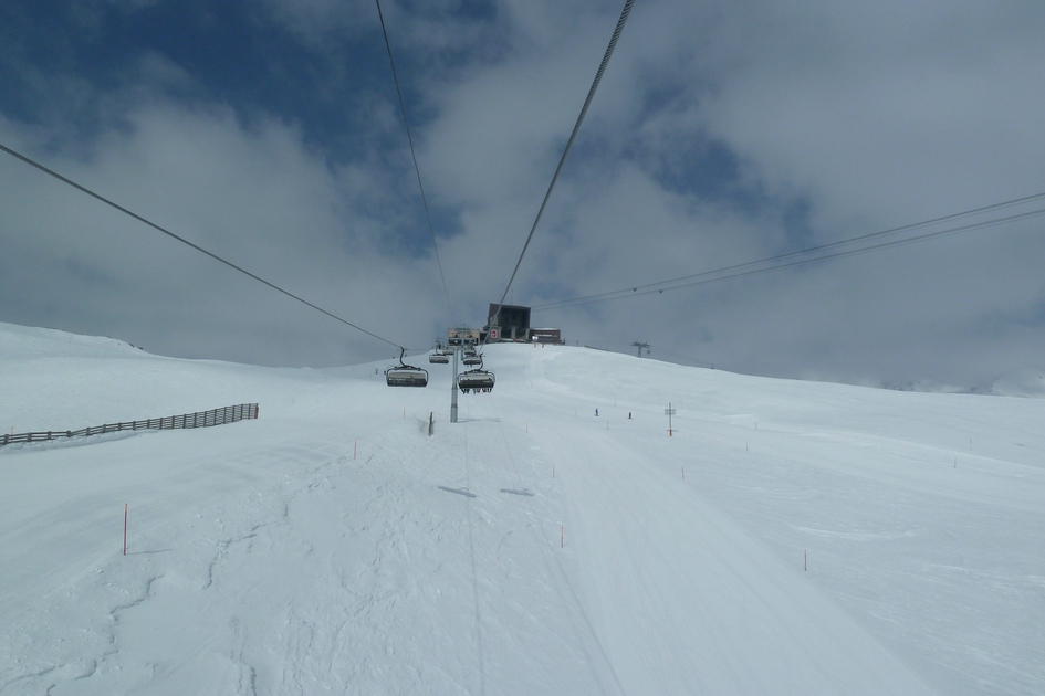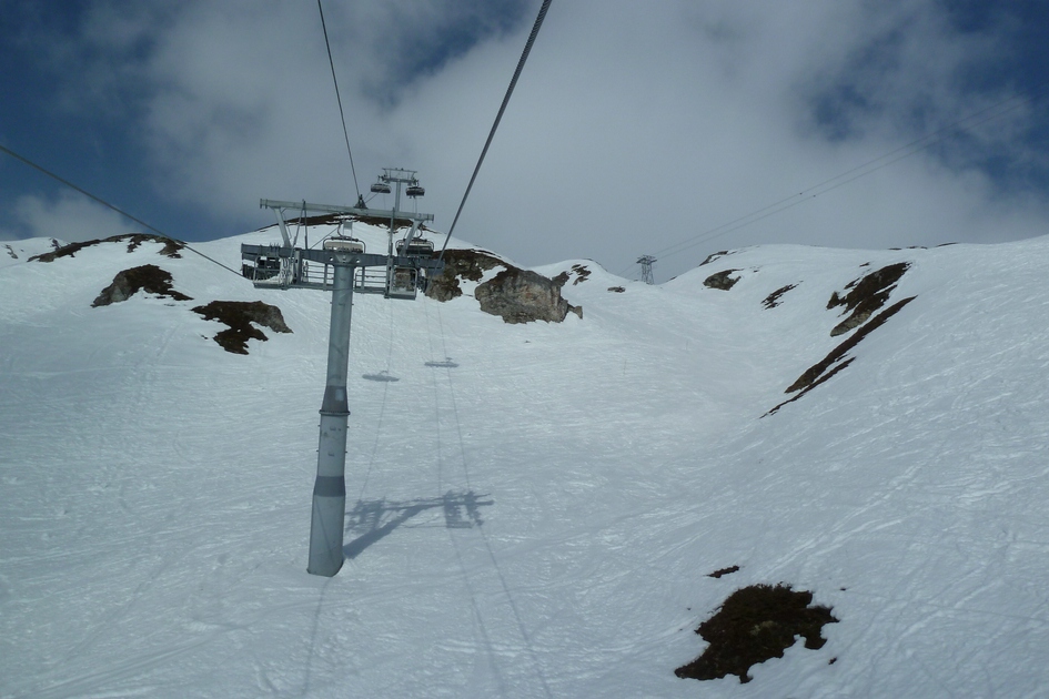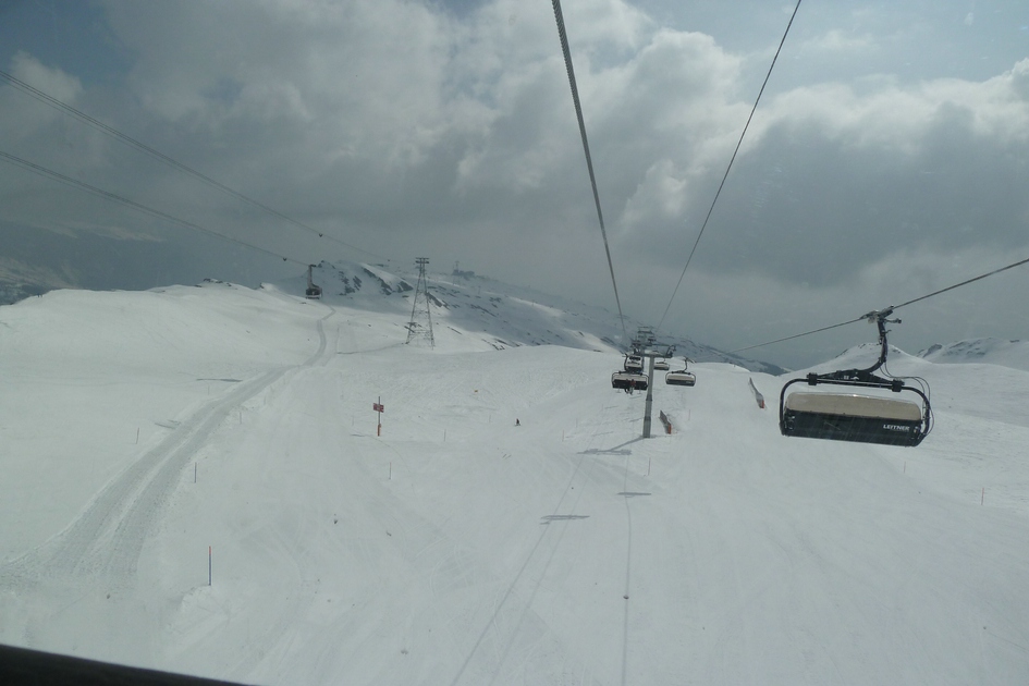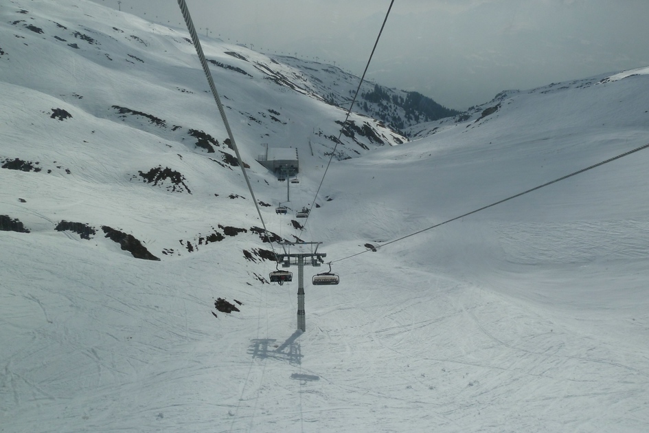 In der 4-KSB Falera. Das Schneeband der Talabfahrt 53 ist gut zu sehen.