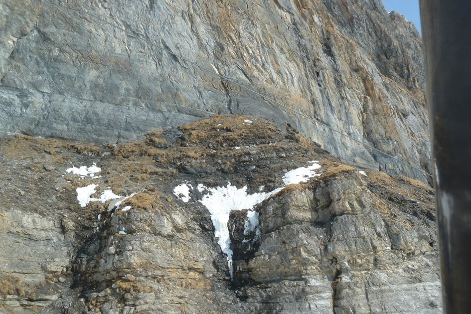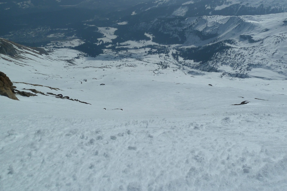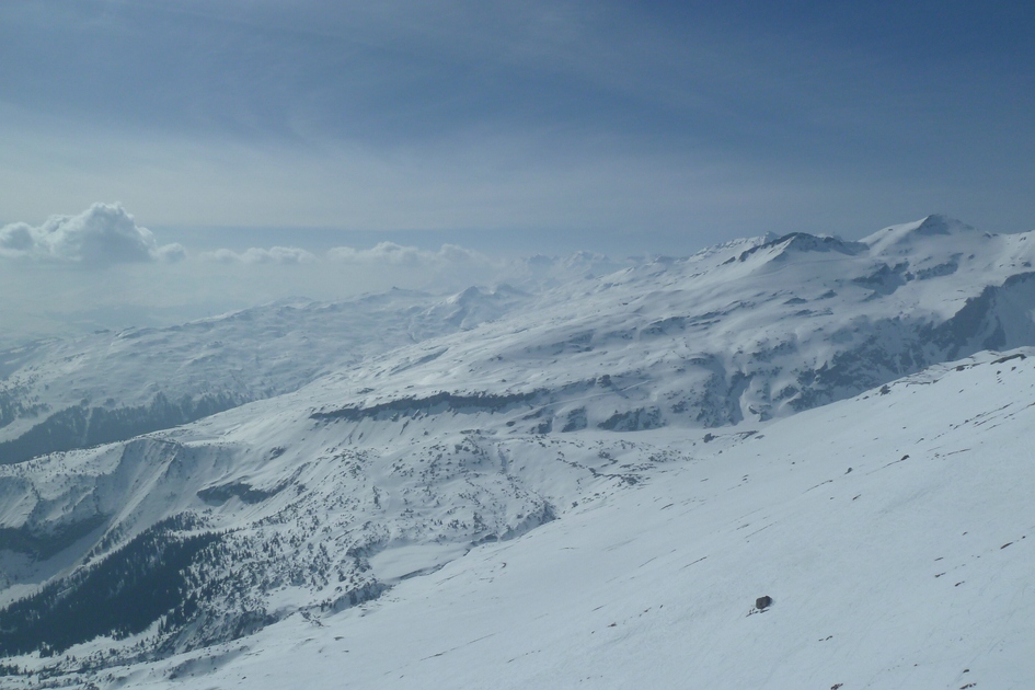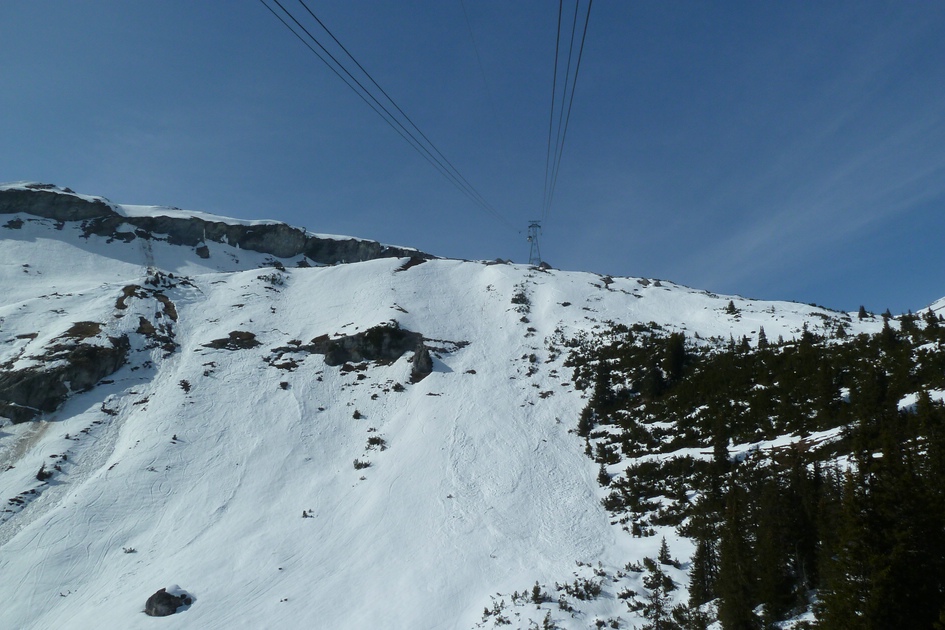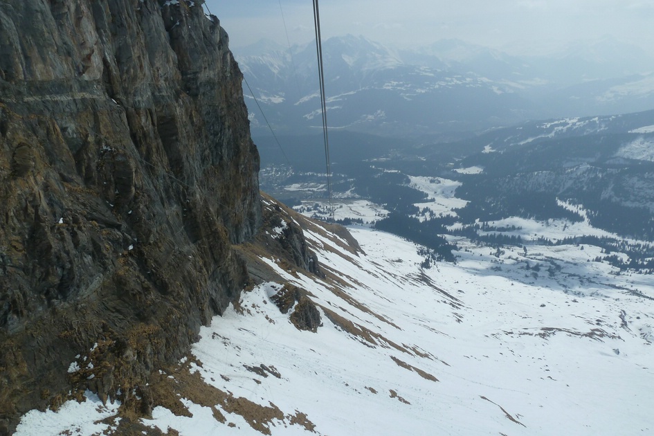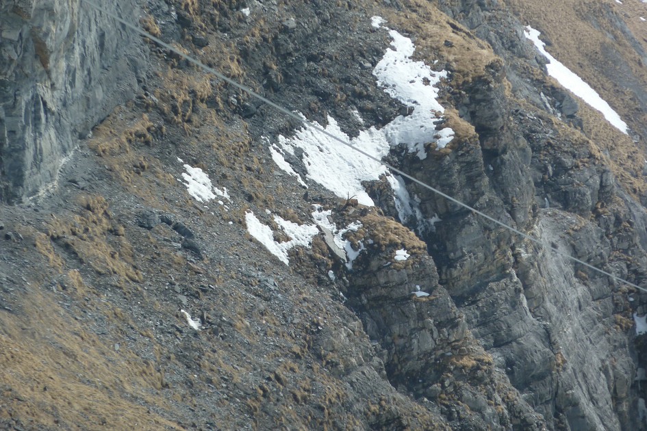 Blick aus der Cassonsbahn. Bei den Felsen liegt (schwach zu erkennen ) ein Steinbock.