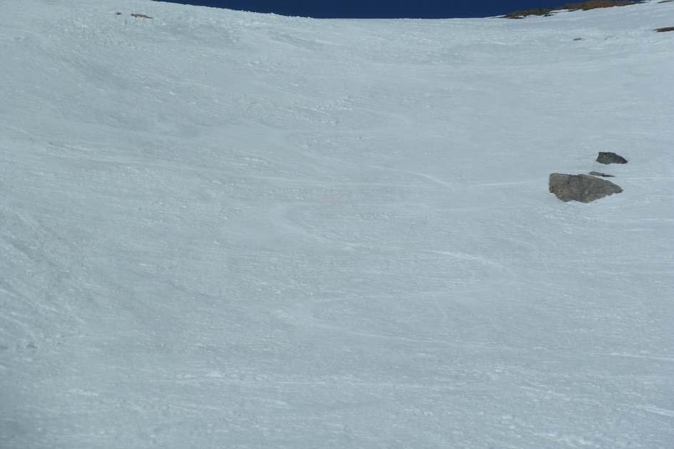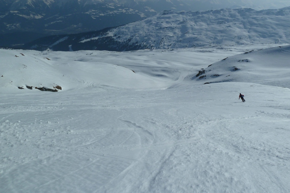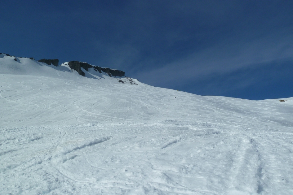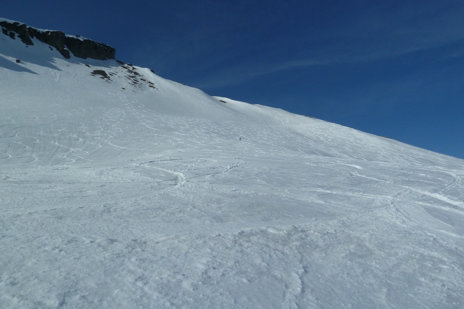 Oberster Steilhang der Skiroute 70. Dieser wird bei einem Neubau der Cassonsbahn mit Bergstation bei Ils Cugns nicht mehr erschlossen sein. Sehr schade.