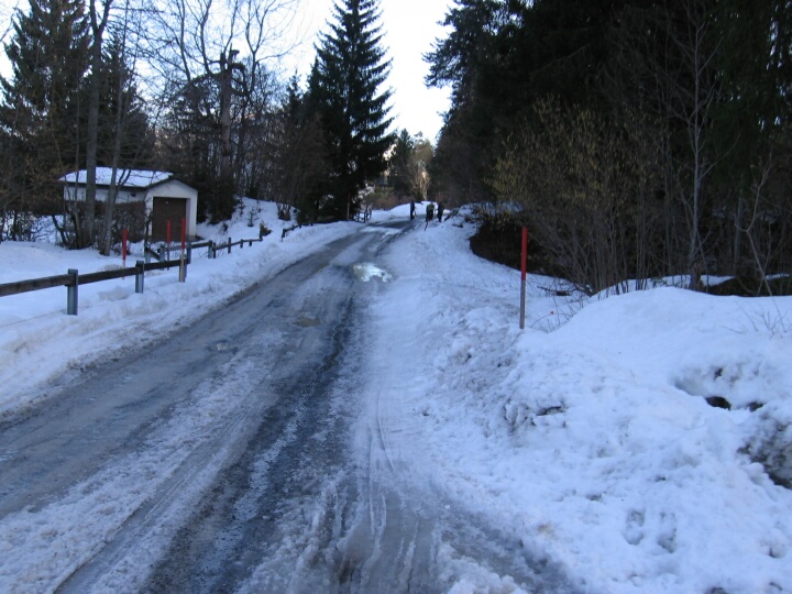 Blaue Talabfahrt 6 (Waldhaus) nach Flims Waldhaus, Erst einmal ein Stück an der Straße entlang