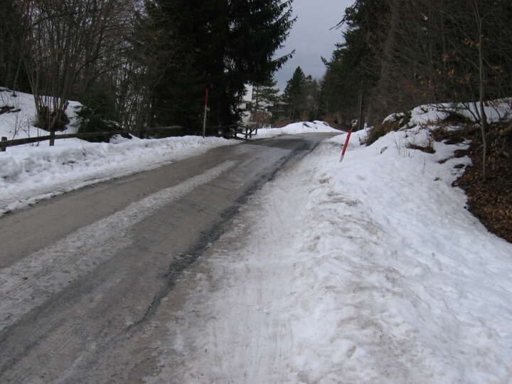 Blaue Talabfahrt 6 (Waldhaus) nach Flims Waldhaus, Da vorne hinter der Tanne links geht es weiter runter