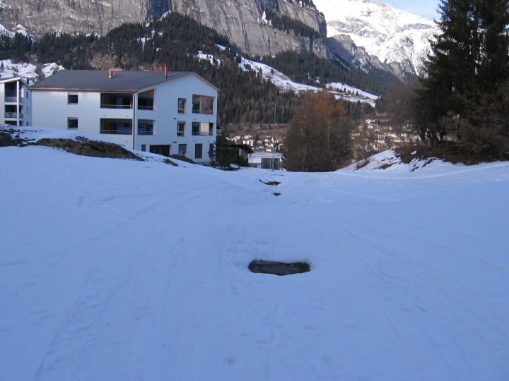 Blaue Talabfahrt 6 (Waldhaus) nach Flims Waldhaus, Im Hintergrund sieht man das Flimserstein