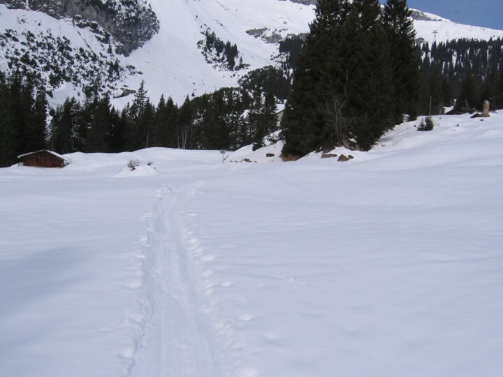 Blaue Abfahrt 7 (Salein), Blick zurück, hinter den Bäumen kann man noch die Talstation der 80-PB Grauberg erahnen