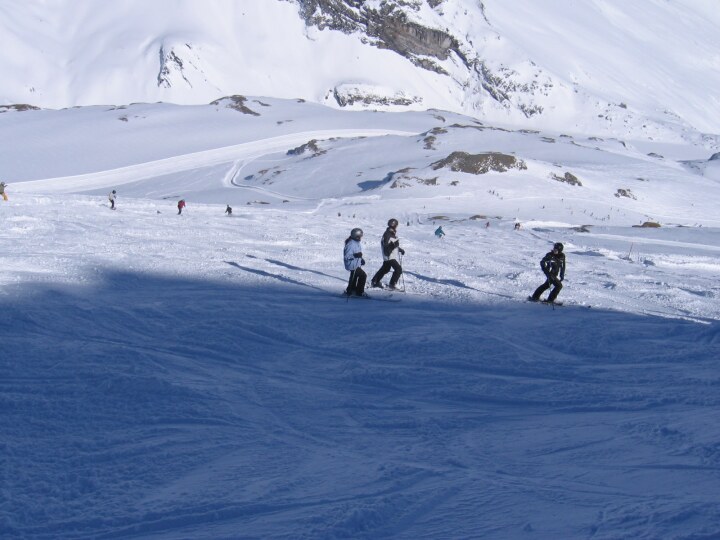 Rote Abfahrt 10 (Siala Ost), 2. Steilhang, Weiter unten, links im Bild sieht man den Verlauf der roten 11