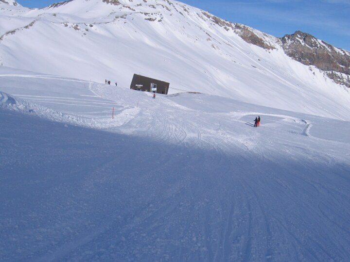 Rote Abfahrt 10 (Siala Ost), Blick zur Bergstation 80-PB Grauberg
