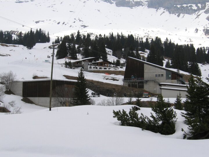 Blaue Abfahrt 10 (Tarschlims), Blick zur Talstation 80-PB Grauberg und zur ehemaligen Bergstation 4-EUB Startgels