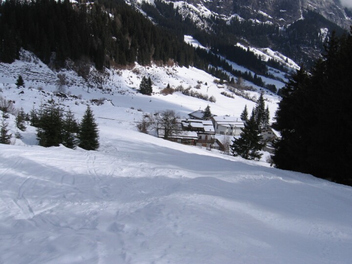 Blaue Talabfahrt 10 (Tarschlims) nach Flims, Letzter Hang bevor die blaue 4 von Foppa auf die 10 trifft (von links)