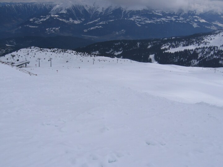 Rote Abfahrt 13, Links die Bergstation der 8-EUB Arena Express (Nagens)