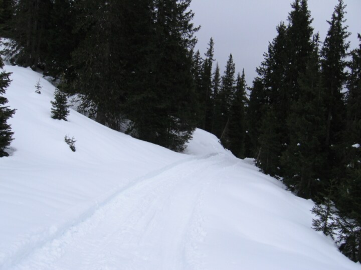Schwarzen Talabfahrt 18 (Stretg) nach Flims, Nach dem "Anstieg" kommt erst wieder ein Skiweg