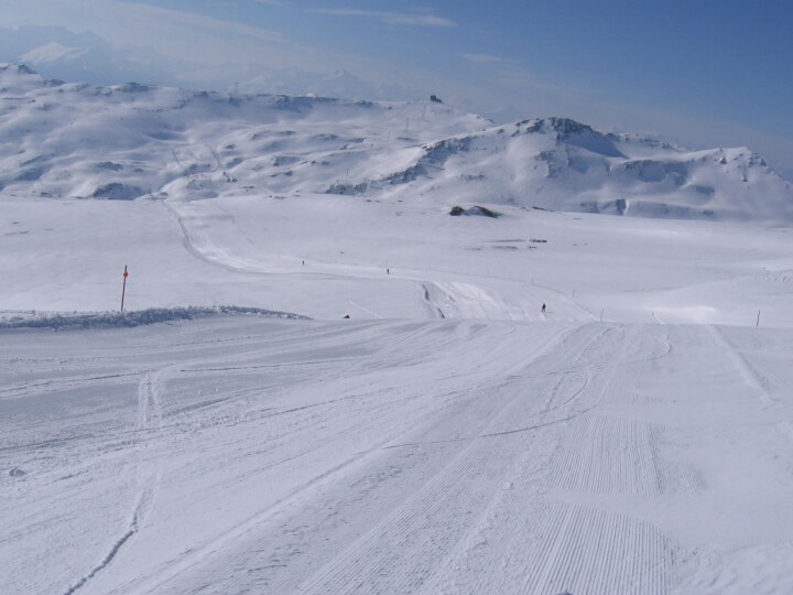 Blaue Abfahrt 27 (Camona), Im Hintergrund die Station Crap Masegn