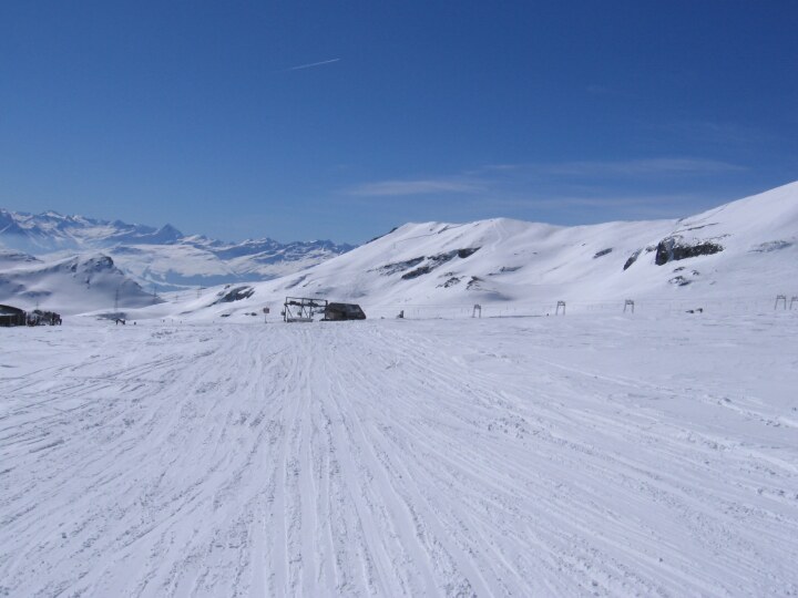 Rote Abfahrt 28 (Glarner), Blick zu den Talstationen der Gletscherlifte