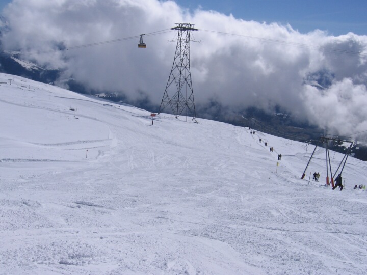 Crest La Siala: An der Bergstation Alp Dado, Blick zur 125-PB Crap Masegn
