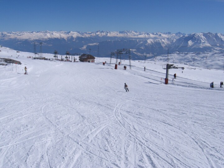 Blaue Abfahrt 32 (Beni), Blick zu den Talstationen der Gletscherlifte