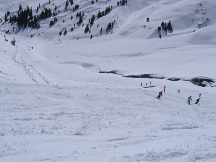 Schwarze Sattelabfahrt (35), Nach der Zick-Zack Kurve kommt ein recht langer Ziehweg bis ans Ende der Abfahrt an der Talstation der DSB Alp Ruschein