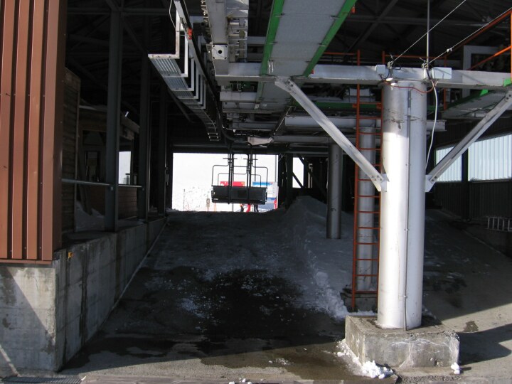La Siala: In der 3-KSB La Siala: Einfahrt in die Bergstation: Baujahr: 1982, Hersteller: Habegger/VonRoll