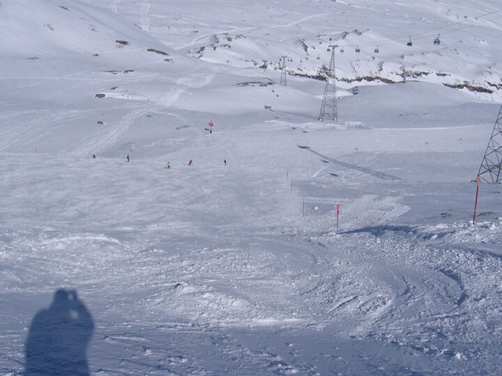 Rote Abfahrt 40 (Plaun), Im Steilhang, Unten geht geradeaus die schwarze 41 weiter, nach rechts die rote 40