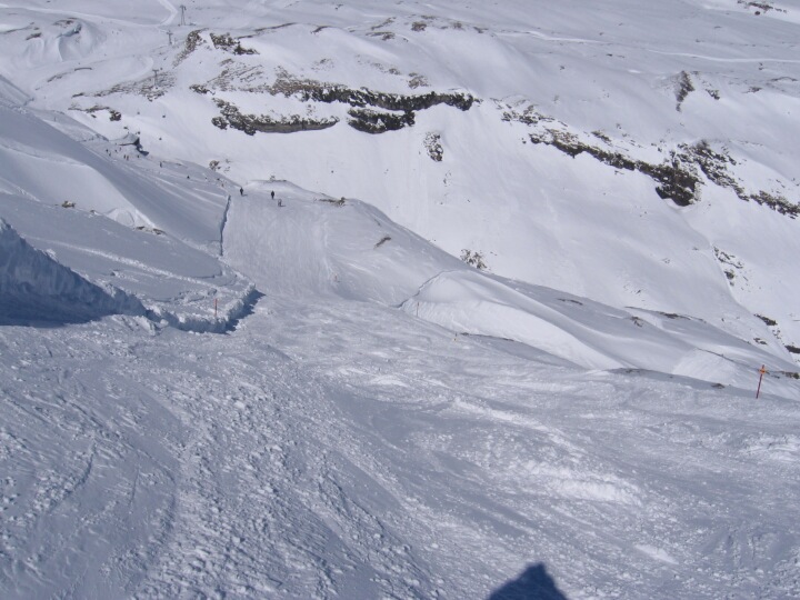 Rote Abfahrt 40 nach Fuorcla, Noch vor dem kurzen Stück bergauf führt die rote 40 auf die blaue 43
