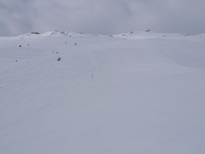 Rote Abfahrt 42 (Pulver), Blick zurück zum letzten Steilhang, Die 42 trifft hier auf die rote 40 vom Crap Masegn