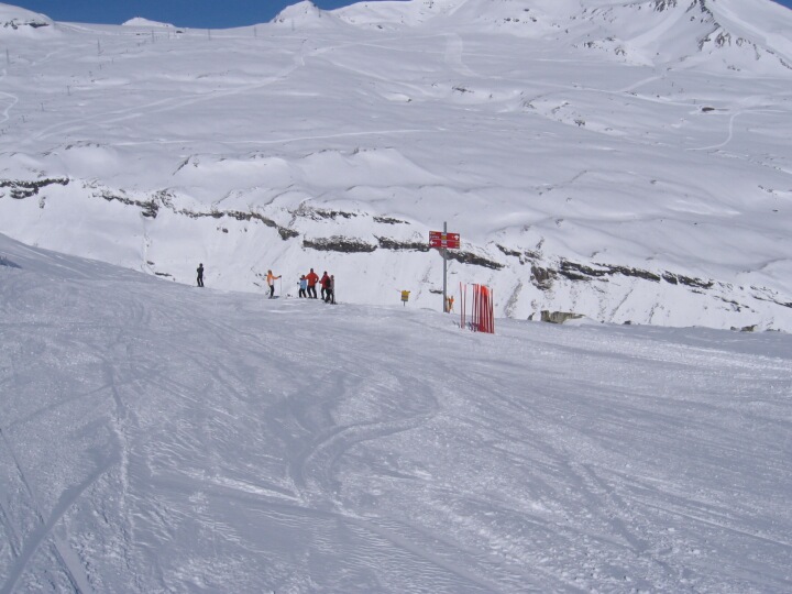 Abzweig der Pisten 42 (rot) und 43 (blau)