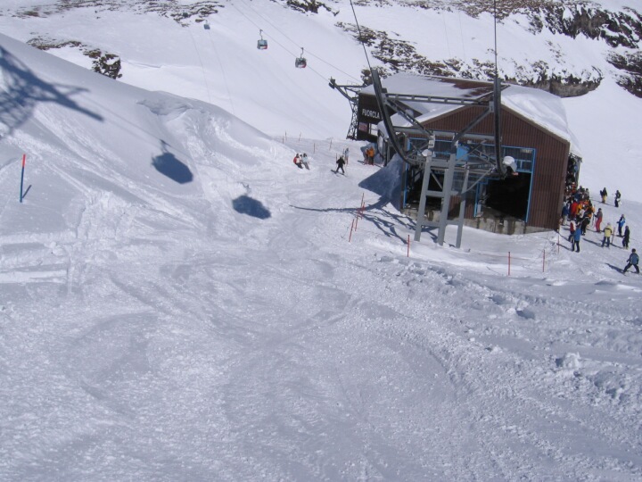 >> Weiter zum Eingang in die Mittelstation Richtung Crap Masegn runterfahren