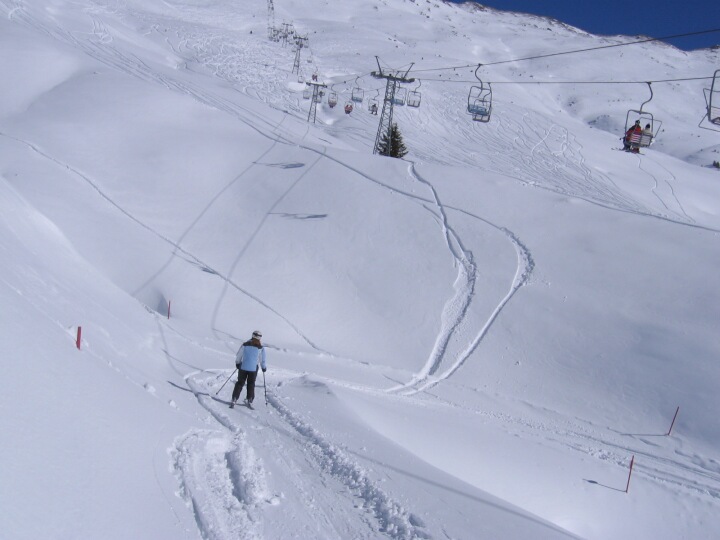 Rote Abfahrt 44 (Masegn West) Linke Variante, Mit im Blick die DSB Alp Ruschein