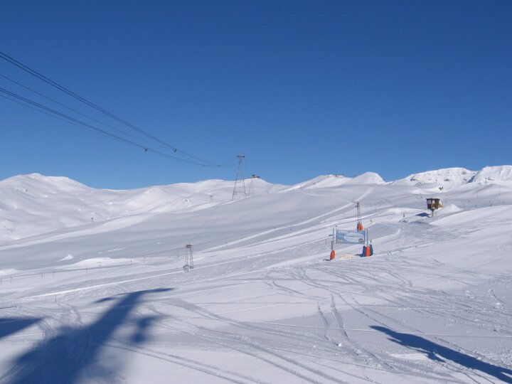 Start der blauen Abfahrt 52 (Alp Dado), Blick Richtung Crap Masegn