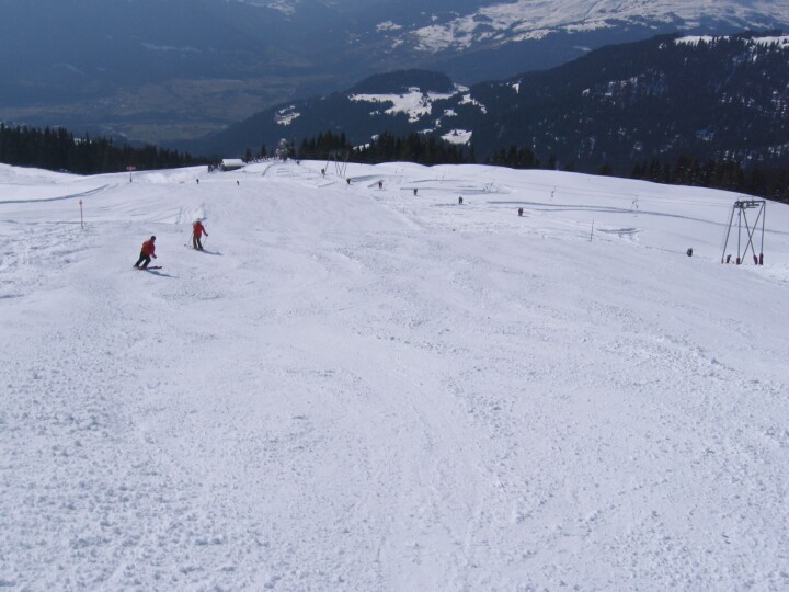 Blaue Abfahrt 52 (Alp Dado), Blick zur Talstation des 2-SL Alp Dado