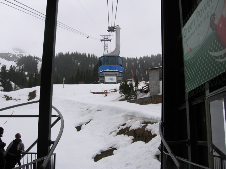 Startgels: In der Talstation der 80-PB Grauberg: Blaue Kabine bei der Einfahrt