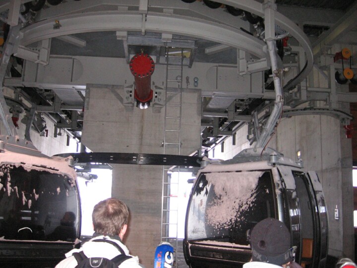 Flims: In der Talstation der 8-EUB Arena Express: Baujahr: 1997, Hersteller: Garaventa