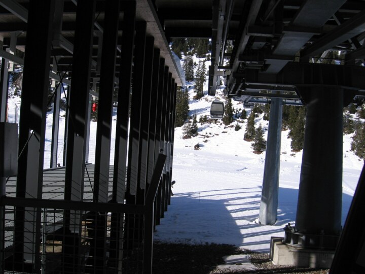 Plaun: Ausfahrt aus der 1. Mittelstation der 8-EUB Arena Express II: Baujahr: 1997, Hersteller: Garaventa