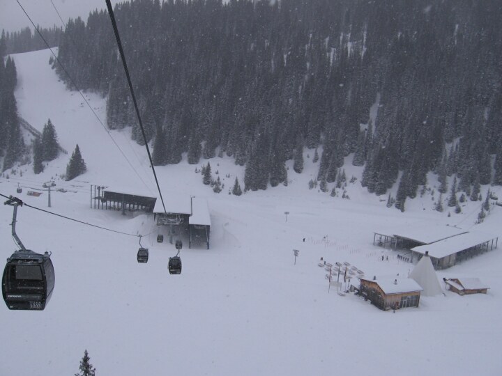 In der 8-EUB Arena Express II, Blick zurück nach Plaun, Rechts die Talstation der 6-KSB/B Plaun