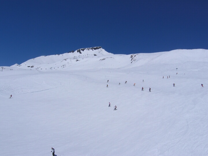 In der 8-EUB Arena Express III, Blick Richtung Bergstation Mutta Rodunda, unten die blaue Piste 12