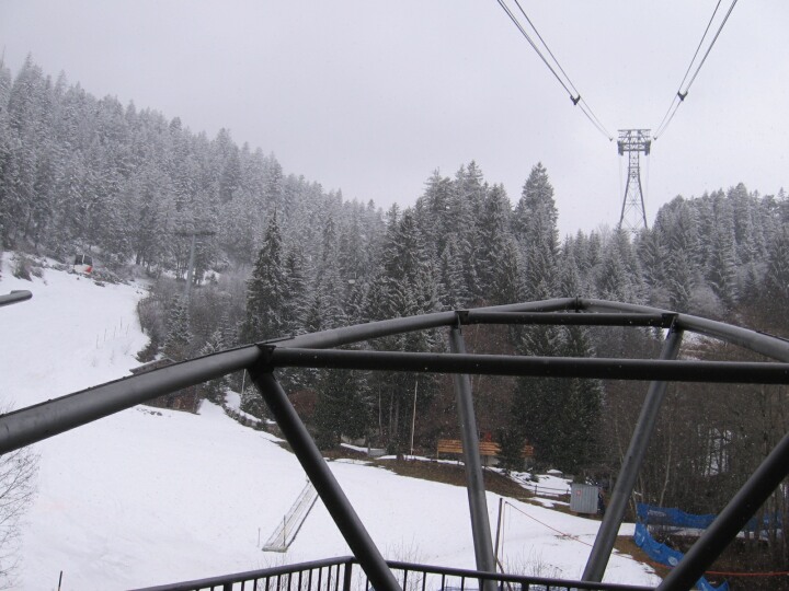 Laax Murschetg: Blick aus der Talstation der 125-PB Crap Sogn Gion: Baujahr: 1968, Hersteller: Habegger
