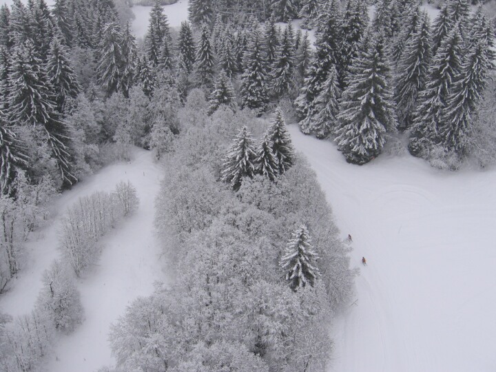 In der 125-PB Crap Sogn Gion: Blick nach unten auf die Talabfahrt